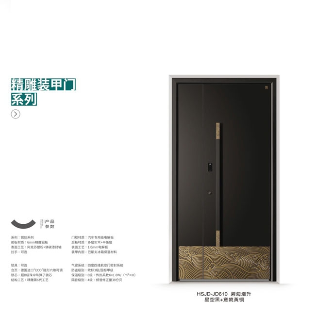 • 产品型号:精雕装甲门-HSJD-JD610碧海潮升